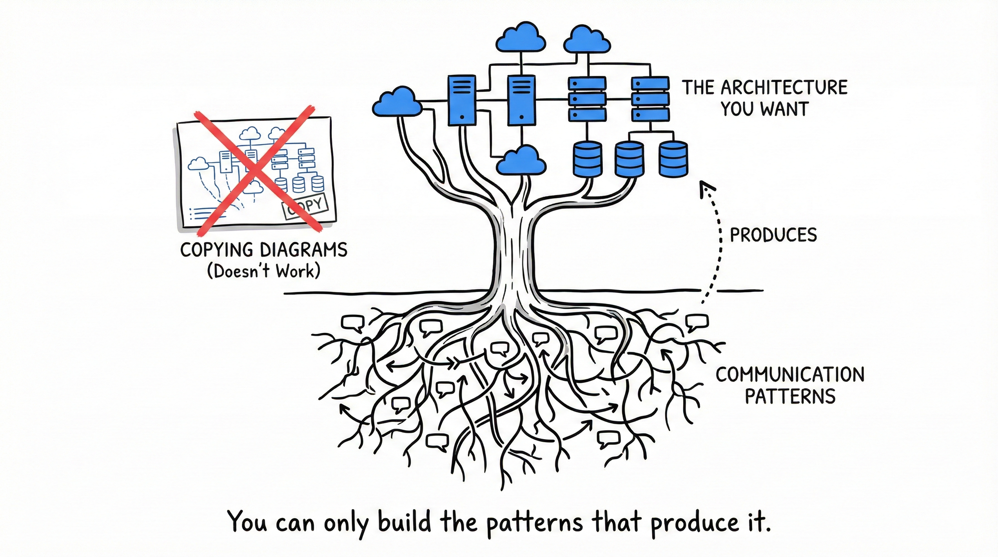 Copying an org chart doesn't give you the architecture. The architecture emerges from how people actually communicate, not from what you call them.
