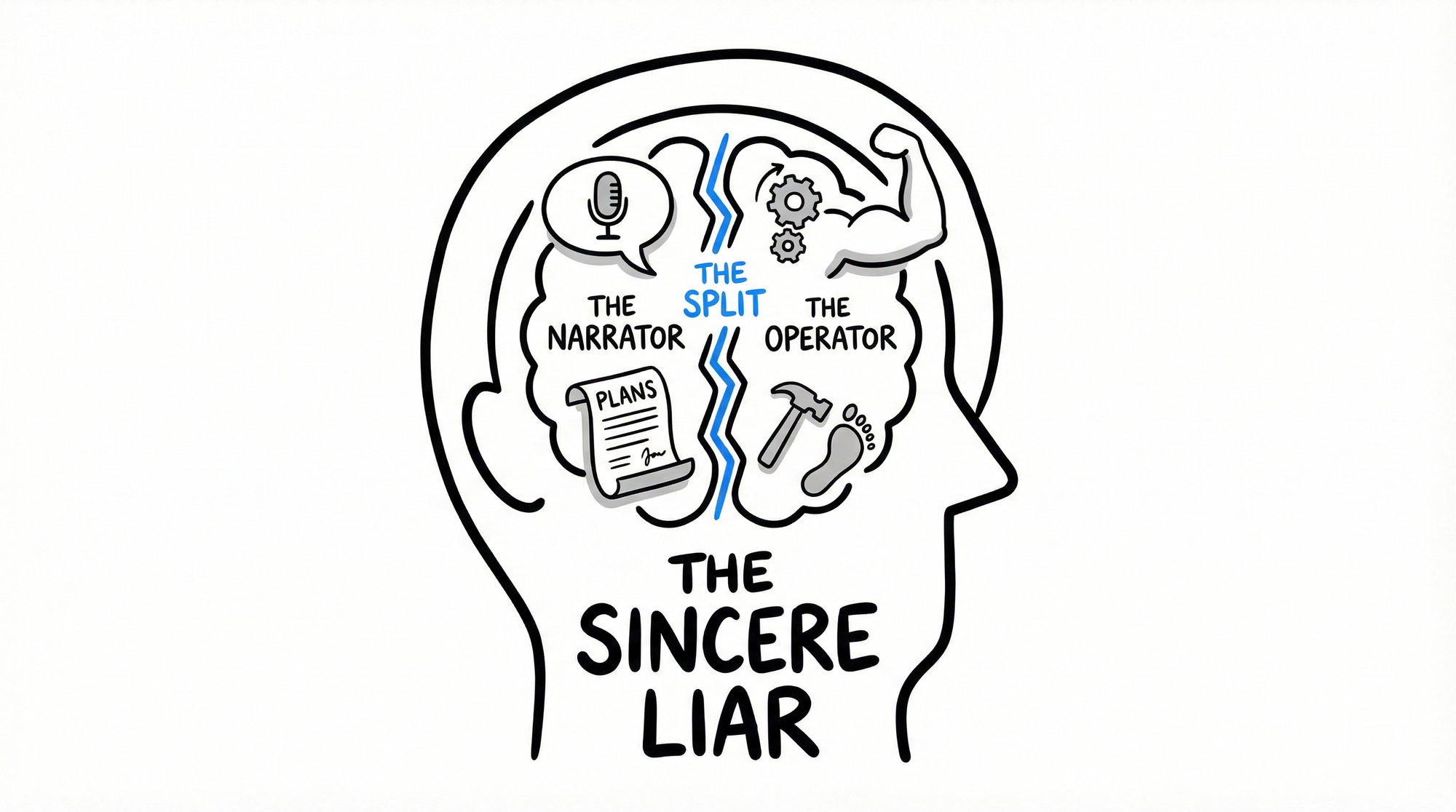 This post explores THE SPLIT, one of four forces from Execution Reveals. The Narrator articulates. The Operator acts. The gap between them isn't hypocrisy. It's architecture.