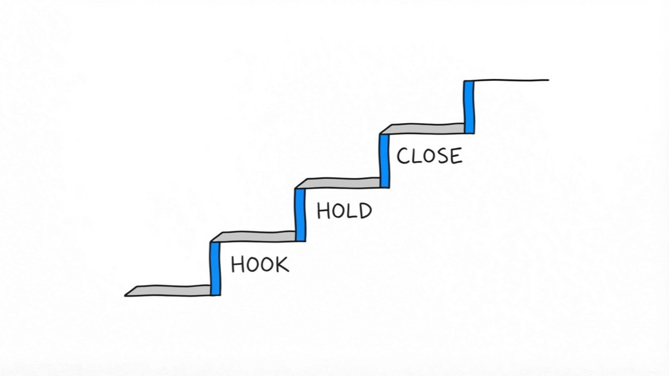 Hook earns attention. Hold earns desire. Close earns action. Skip a step, and the one after it fails.